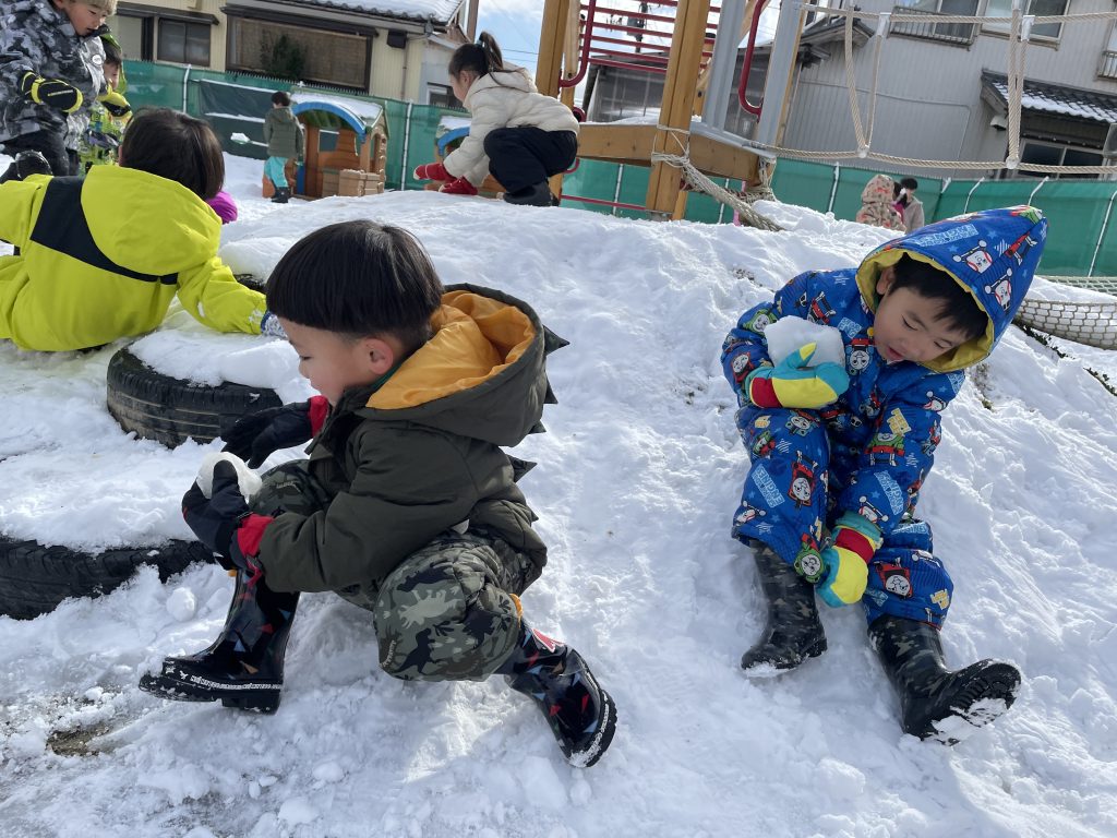 みどり保育園では冬の自然に触れて、雪遊びを満喫しています!